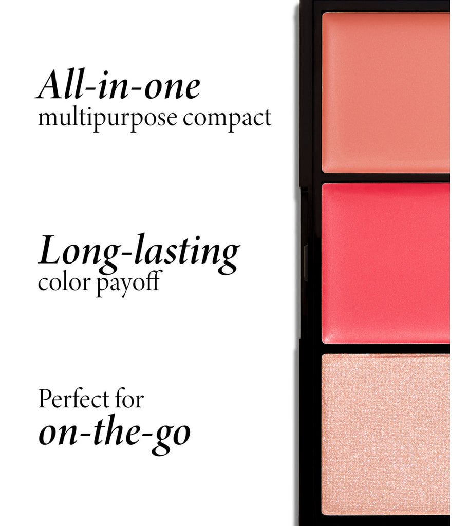 The 3-well multitasking cream to powder face palettes include two finishes – demi-matte and subtle shimmer and are available in 2 shade variations. Each shade can be used on various parts of the face including the lips, eyes and cheeks. The silky-smooth transformative texture goes on like a cream for easy blending and finishes like a powder for long-lasting color payoff.